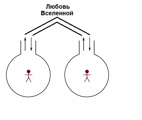 Смотрим следующий рисунок. И по закону подобия (подобное притягивает подобное, или что посылаешь миру, то тебе возвращается) мост от человека, за которого молились, через любовь Вселенной возвращается к тебе энергией любви, усиленной, нежели та, которую ты послал.